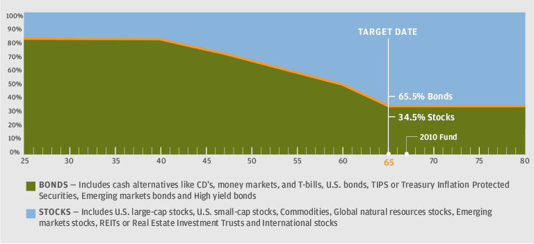 A target date fund is designed for investors who hope to retire around a certain date — say, 2025 — and don't want to fuss with changing their allocations of stocks, bonds and cash by themselves. If you want the flexibility to choose different investments beyond the target date funds, you may do so using the plan's core fund menu.